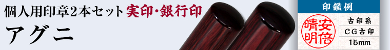 個人に必要な印章(印鑑)のアグニの印章(印鑑)のセットです。 役所に登録する「実印」と銀行口座開設に利用する「銀行印」のセットです。 銀行印は、既成印でも受け付けてもらえますが、大切な財産の出し入れを行う印章(印鑑)も複製のできないオリジナルなものを用意しましょう。