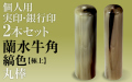 個人に必要な印章(印鑑)の蘭水牛角・縞色(極上)の印章(印鑑)のセットです。 役所に登録する「実印」と銀行口座開設に利用する「銀行印」のセットです。 銀行印は、既成印でも受け付けてもらえますが、大切な財産の出し入れを行う印章(印鑑)も複製のできないオリジナルなものを用意しましょう。
